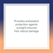 - Ofrece protección antioxidante contra daño por radicales libres causados por la luz solar.