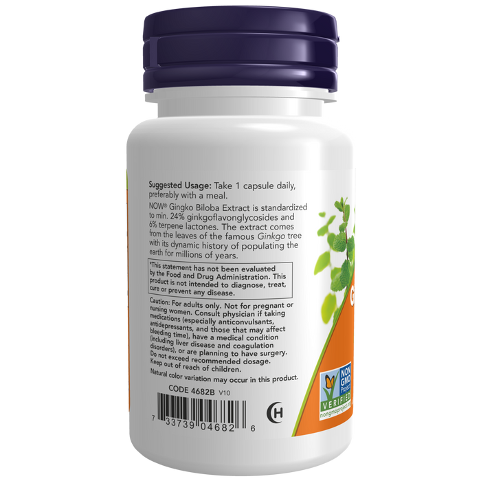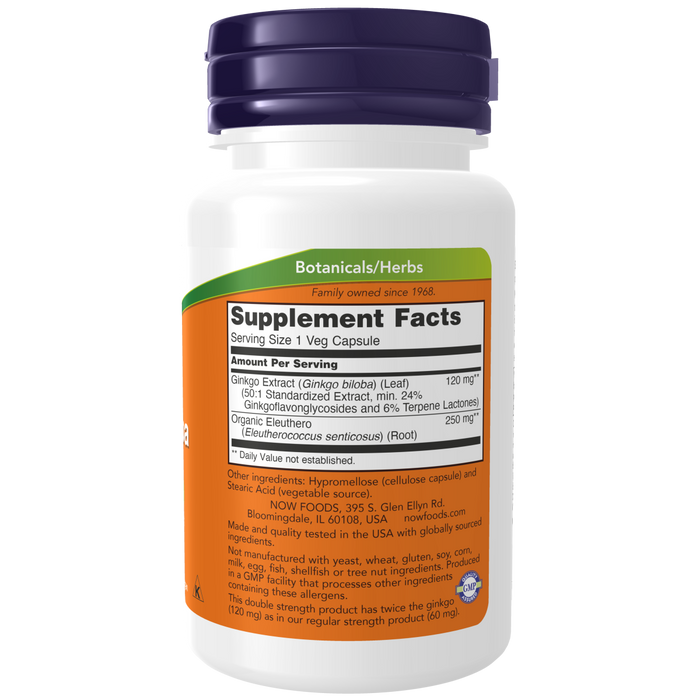 24% Extracto estandarizado con raíz de eleuthero NOW® El extracto de gingko biloba está estandarizado a un mínimo de 24% de ginkgoflavonglicósidos y 6% de lactonas terpénicas. El extracto proviene de las hojas del famoso árbol de Ginkgo.