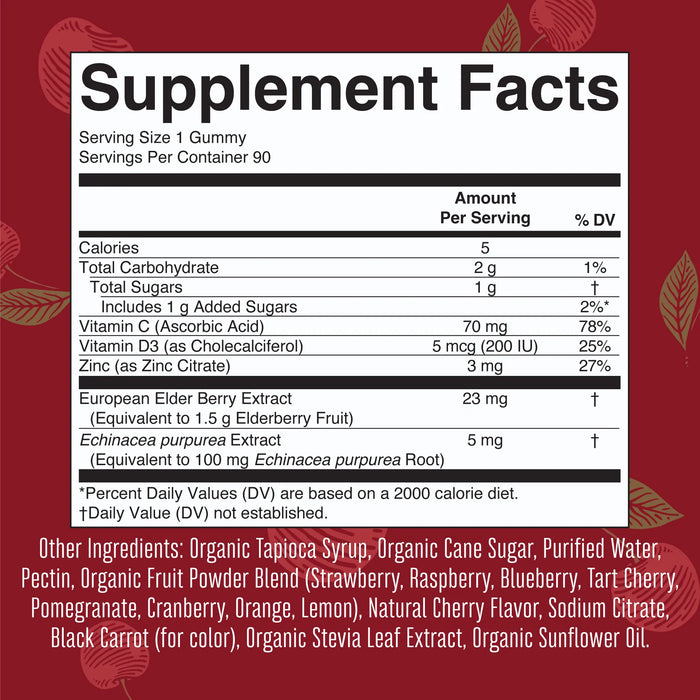 Deje que esta poderosa mezcla de zinc, saúco, vitamina C, vitamina D y equinácea apoye su sistema inmunológico.
