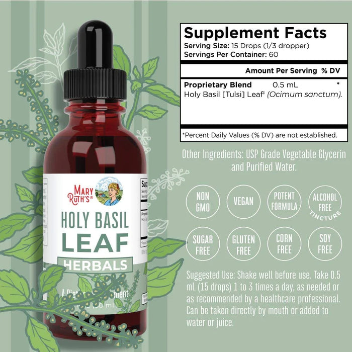Hoja de Albahaca Sagrada Organica, Liquido 30 ml (1 fl oz), Mary Ruth's