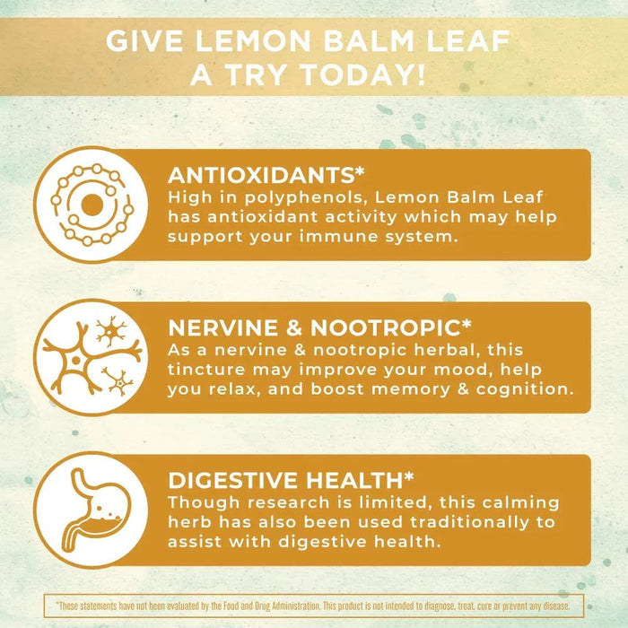 ¡Prueba hoy mismo la hoja de bálsamo de limón, conocida por sus propiedades calmantes! Hay tantos beneficios que esta hierba, Melissa officinalis , puede ofrecerle. ¡Entre ellos se encuentran la cognición, la memoria y el apoyo al estrés!