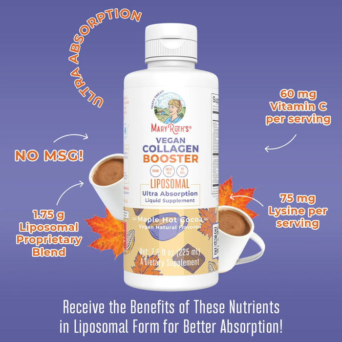 Potenciador de Colageno Vegano Liposomal Sabor Chocolate Caliente con Maple, Liquido 225 ml (7.6 fl oz), Mary Ruth's