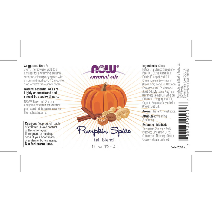 Para uso en aromaterapia. Agréguelo a un difusor para obtener un cálido aroma otoñal (agregue hasta 30 gotas a 1 oz. de agua en una botella con atomizador)