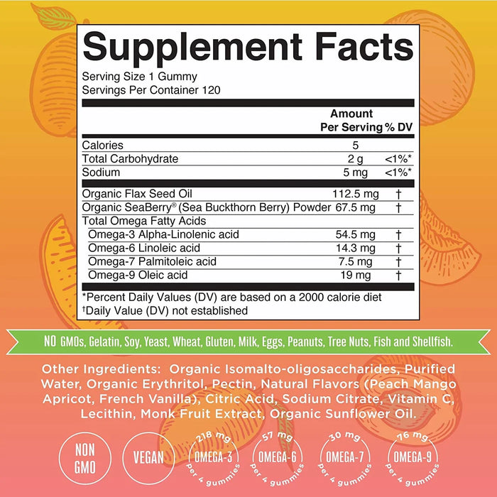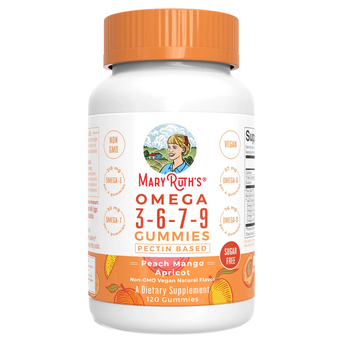 Omega 3-6-7-9 Sabor Durazno y Mango (120 gomitas), Mary Ruth´s