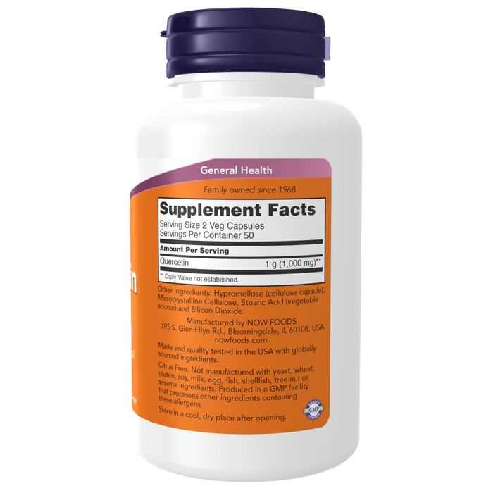 La quercetina es un eliminador natural de radicales libres que apoya la función saludable del sistema inmunológico estacional. Los estudios de laboratorio han demostrado que la quercetina también puede ayudar a promover la función respiratoria normal.