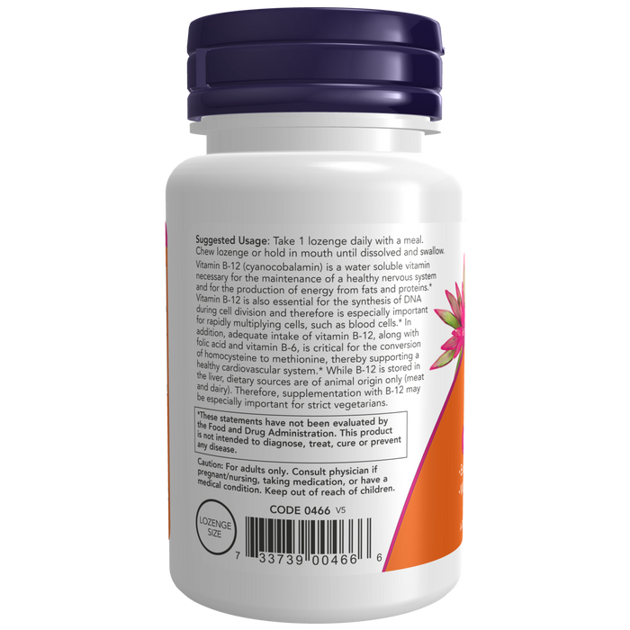 La vitamina B-12 (cianocobalamina) es una vitamina soluble en agua necesaria para el mantenimiento de un sistema nervioso saludable y para la producción de energía a partir de grasas y proteínas.* La vitamina B-12 también es esencial para la síntesis de ADN durante la división celular y por lo tanto es especialmente importante para las células que se multiplican rápidamente, como las células sanguíneas.